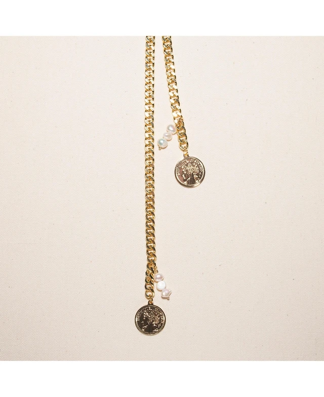 18K Gold Plated Freshwater Pearls with a Coin Pendant - Giorgia Pearl Necklace 17" For Women