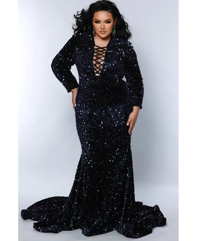 Johnathan Kayne for Sydney's Closet Women's Long Sleeve Sequin Velvet Evening Gown