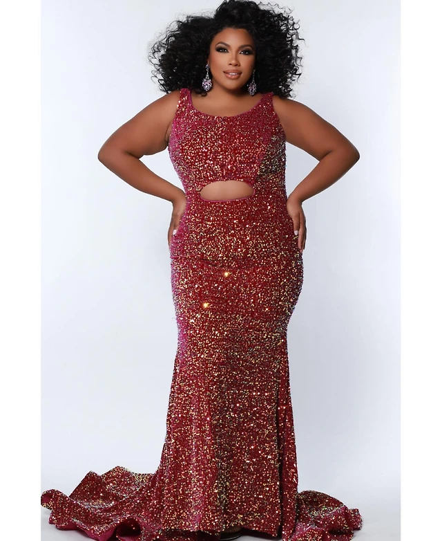 Johnathan Kayne for Sydney's Closet Women's Sequin Velvet Stylish Cut Out Prom Dress