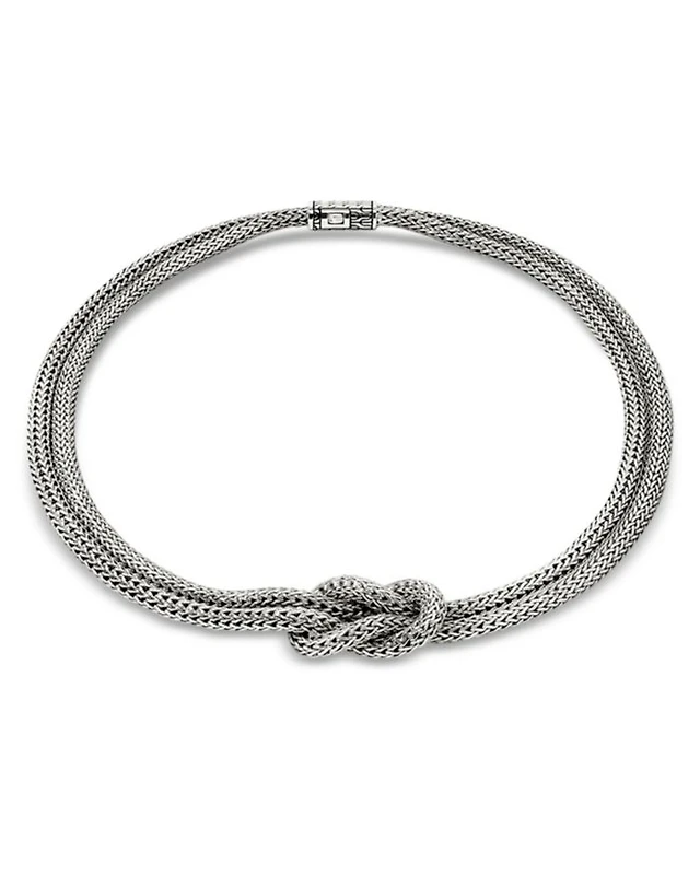 Sterling Silver Classic Chain Love Knot Double Strand Collar Necklace, 16"