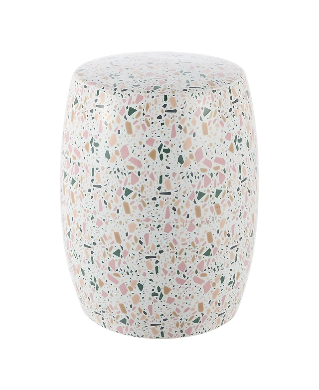 Jonathan Y Chiara 17.5" Terrazzo Ceramic Garden Stool, White/Pink