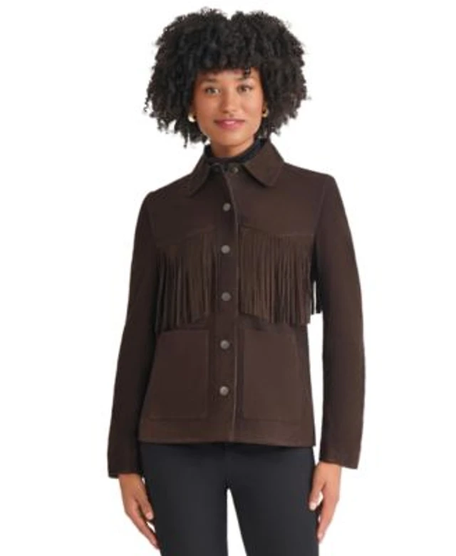 Jones New York Womens Fringe Suede Patch Long Sleeve Jacket Pxs Xl