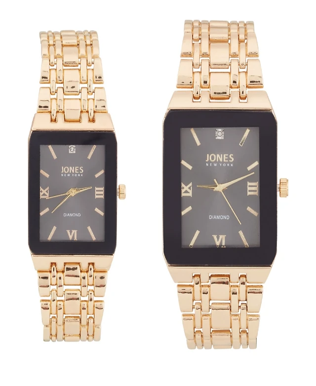 Jones New York Men and Women's Analog Shiny Two-Tone Metal Bracelet His Hers Watch 42mm, 34mm Gift Set