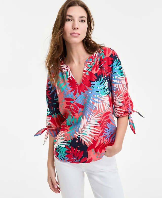 Jones New York Women's Leaf-Print Extended-Shoulder Top