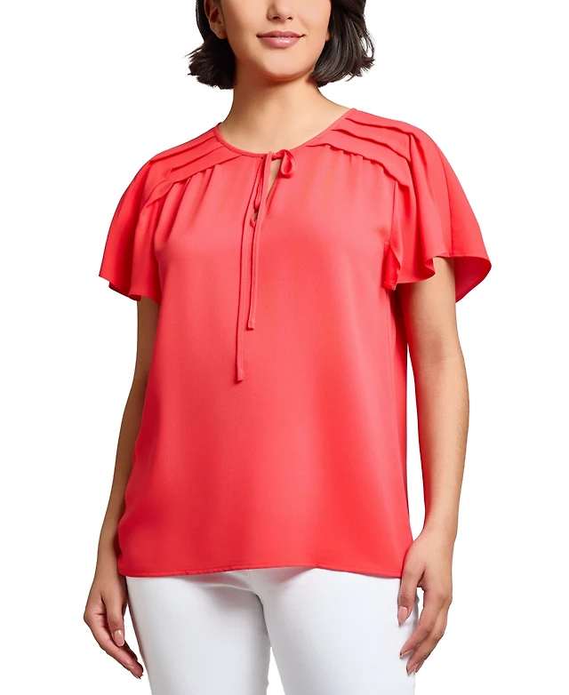 Jones New York Women's Flutter-Sleeve Tie-Neck Top