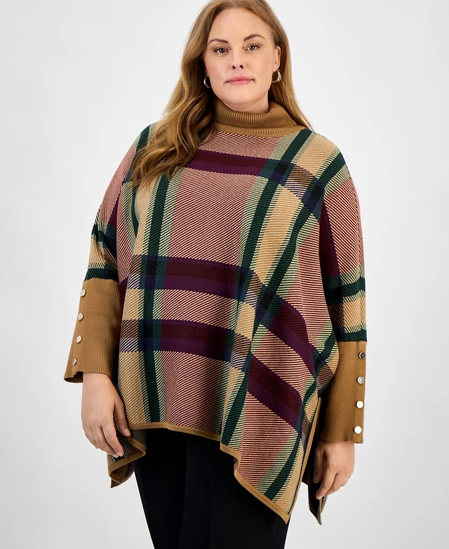 Jones New York Plus Plaid Drop-Shoulder Button-Cuff Sweater