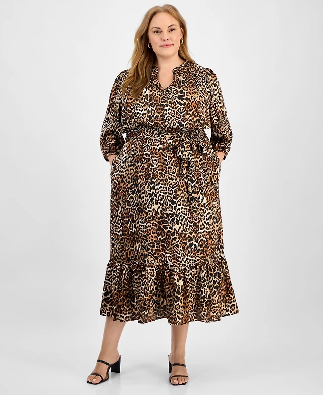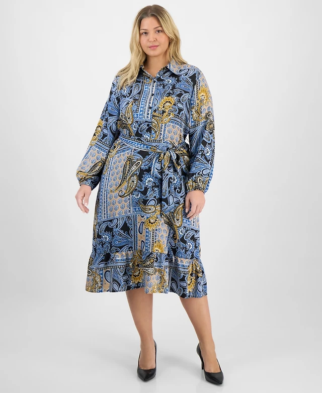 Jones New York Plus Paisley Tie-Waist Tiered Midi Dress