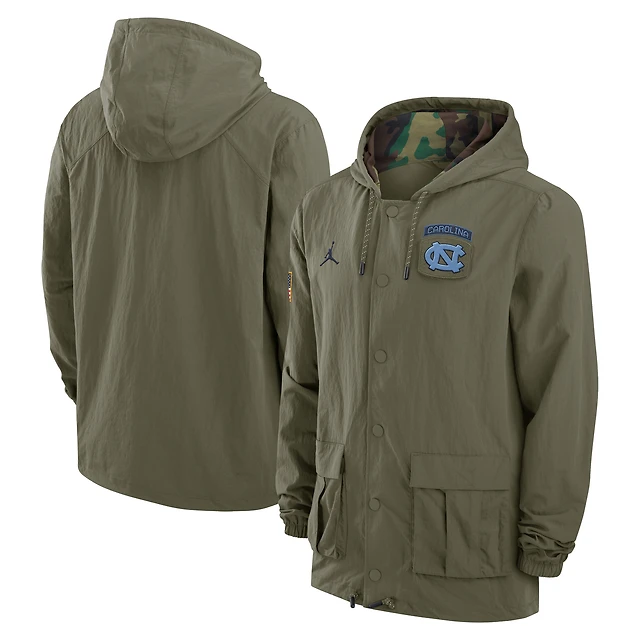 Men's Jordan Brand Olive North Carolina Tar Heels 2024 Military Appreciation Full-Snap Hoodie Military Jacket