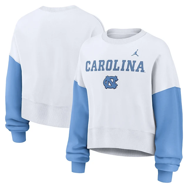 Women's Jordan Brand White North Carolina Tar Heels Oversized Color-Block Pullover Sweatshirt