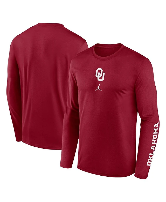 Jordan Men's Crimson Oklahoma Sooners Primetime Center Lockup Two-Hit Legend Long Sleeve T-Shirt
