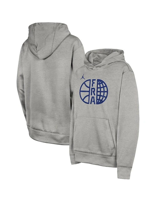 Jordan Big Boys and Girls Heather Gray France Basketball Authentic Practice Club Pullover Hoodie