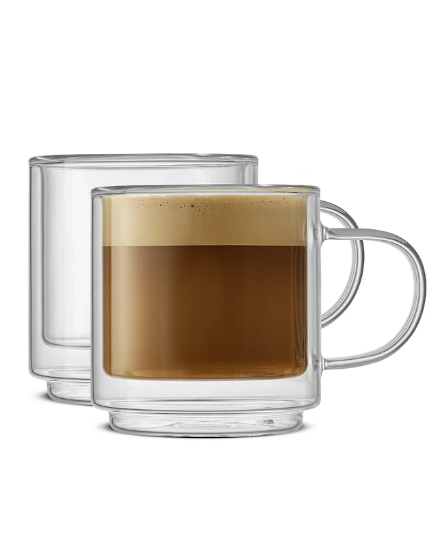 JoyJolt Haven Stackable Double Wall Glass Mugs, Set of 2