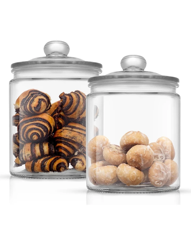 Joyful Round Glass Cookie Jar with Airtight Lids, Set of 2