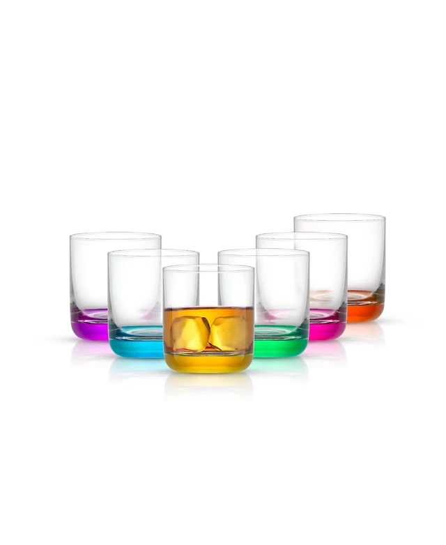 JoyJolt Hue Colored Double Old Fashion Whiskey Glass Tumbler - 10 oz, Set of 6