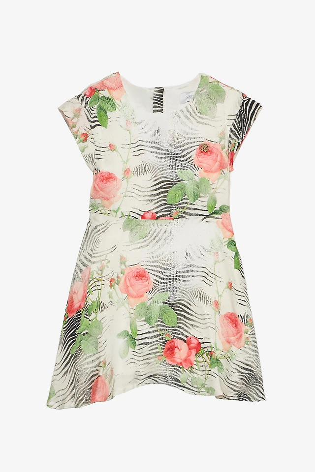 Dress With Mini Zebra And Rose Print