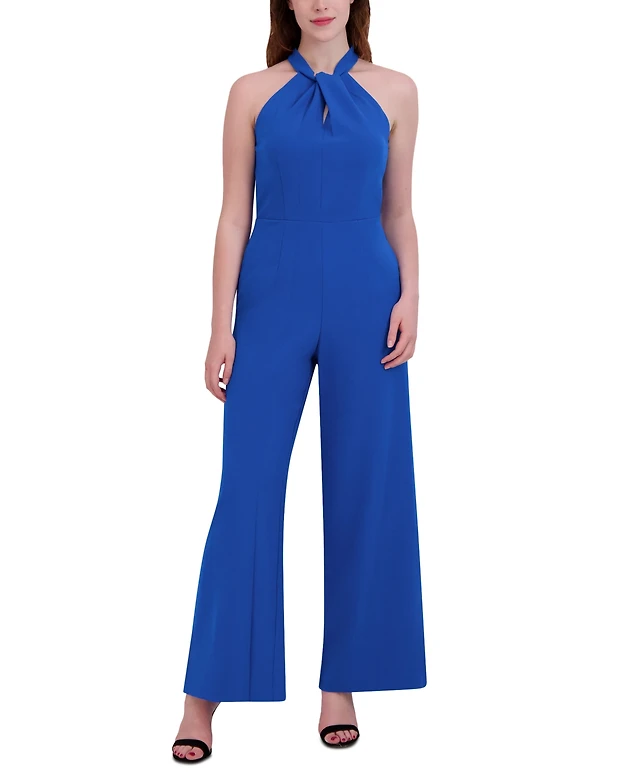 julia jordan Women's Belted Wide-Leg Halter Jumpsuit
