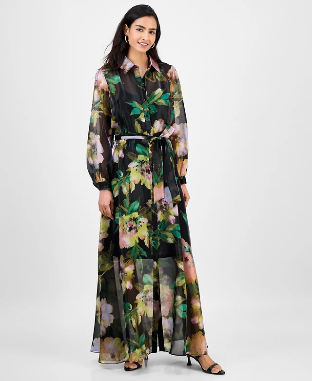 julia jordan Women's Floral-Print Maxi Shirtdress