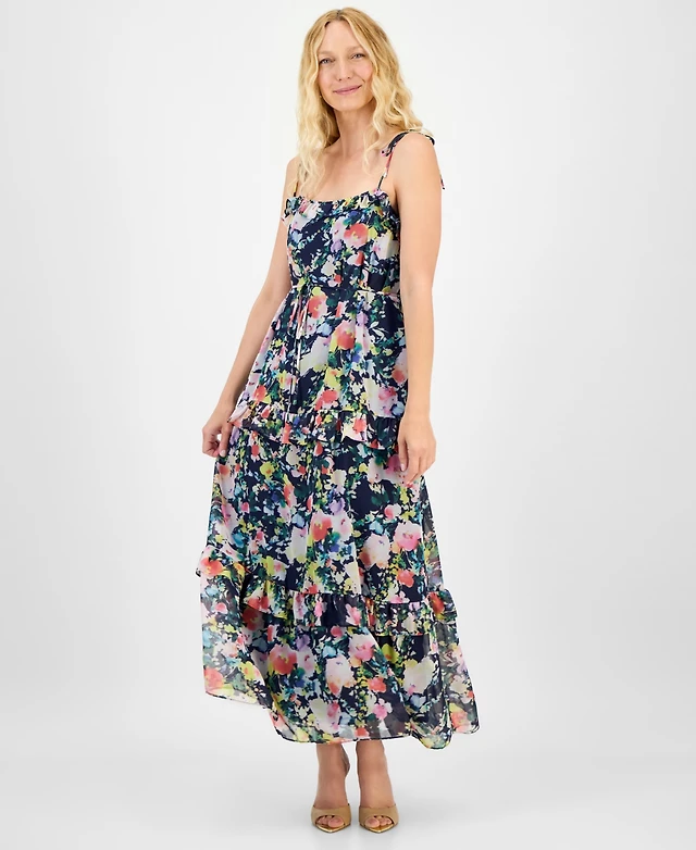 julia jordan Women's Printed Tie-Strap Tiered Maxi Dress
