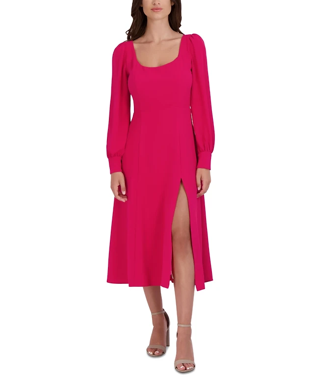 julia jordan Women's Ruched Dolman-Sleeve Boat-Neck Midi Dress