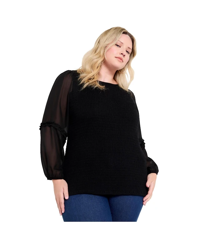 June + Vie Women's June + Vie Puff-Sleeve Smocked Blouse