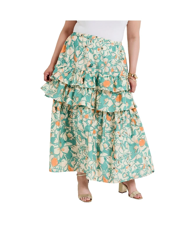 June + Vie Women's Plus Pull-On Flowy Maxi Skirt