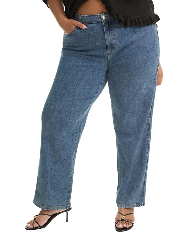 June + Vie Women's Curvie Fit High-Waisted Wide-Leg Utility Jean