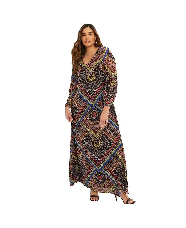 June + Vie Women's Plus Tiered Printed Maxi Skirt