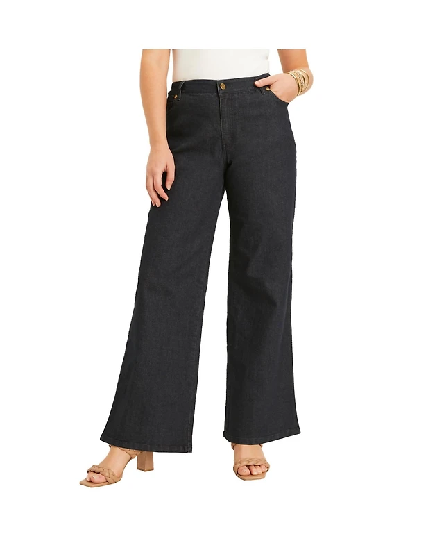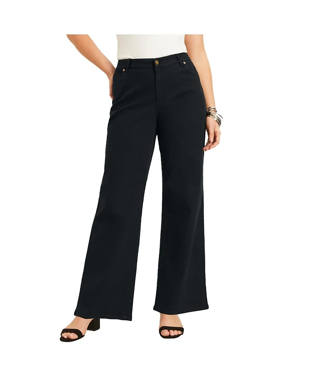 June + Vie Women's Plus French Terry Wide-Leg Pant