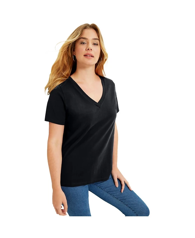 June + Vie Women's Plus Short-Sleeve V-Neck One Only Tee