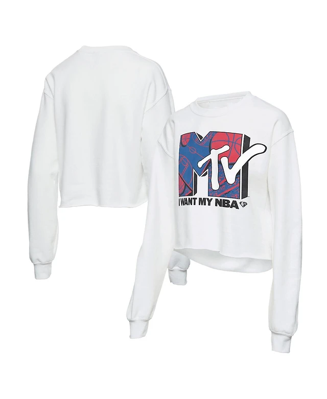 Women's White Nba x Mtv I Want My Cropped Fleece Pullover Sweatshirt