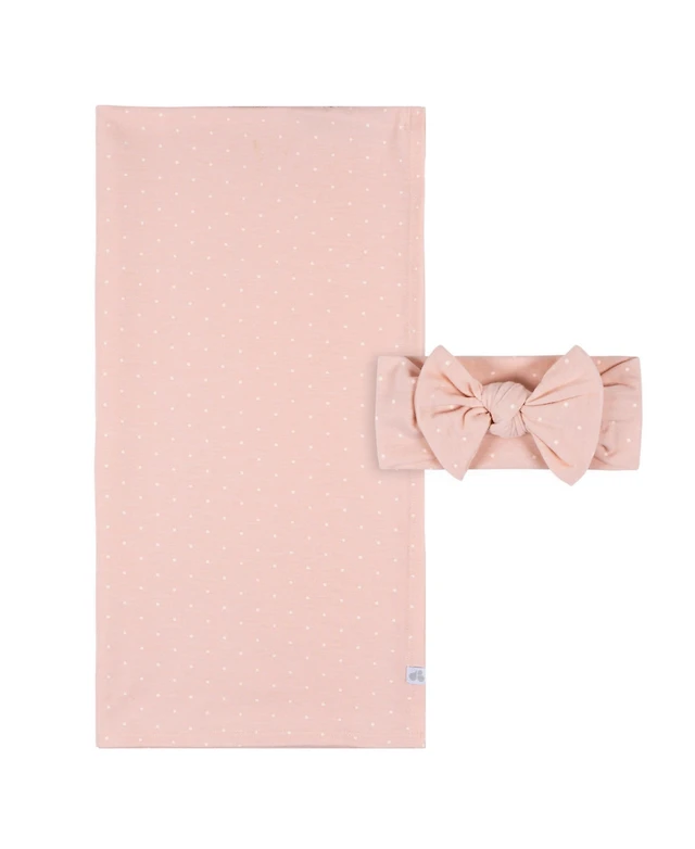 Just Born Baby Girls' 2-Piece Swaddle Blanket & Headband Set, Pink Floral, One