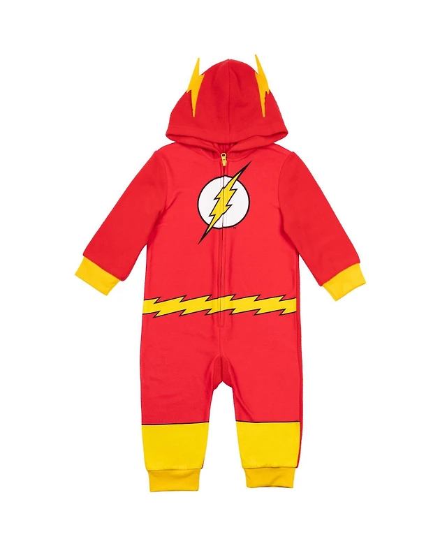 Justice League Toddler Boys Dc Comics Zip Up Pajama Coverall Cape and Mask 3 Piece Costume Set