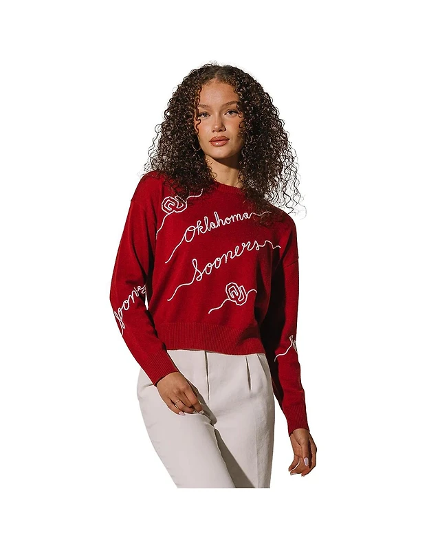 Kadyluxe Women's Crimson Oklahoma Sooners Love Note Embroidered Pullover Sweater