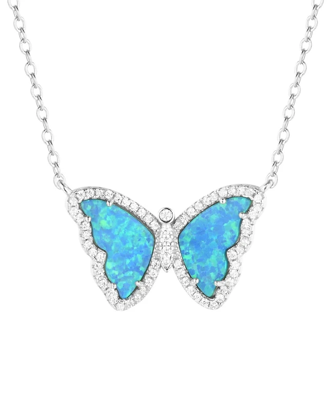 Kamaria Butterfly Necklace with Lab-Grown Opal Sterling Silver