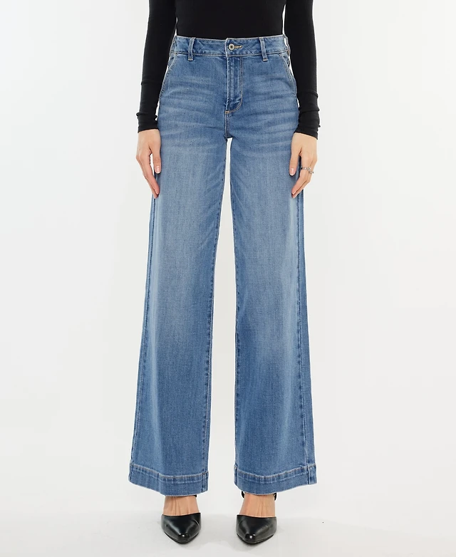 Kancan Women's High Rise Wide Leg Pull On Jeans