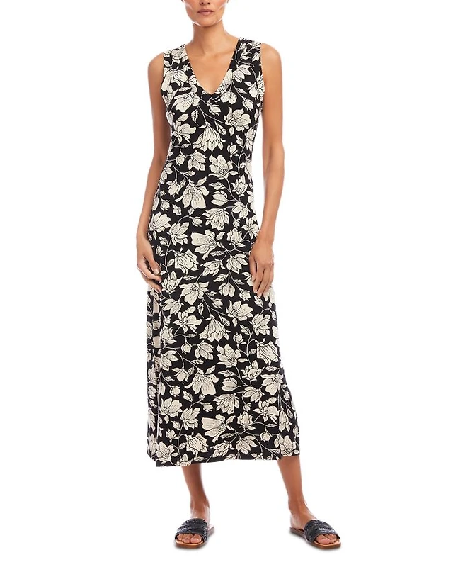 Sleeveless V Neck Midi Dress