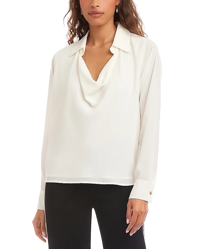 Karen Kane Long Sleeved Collared Cowl Neck Top