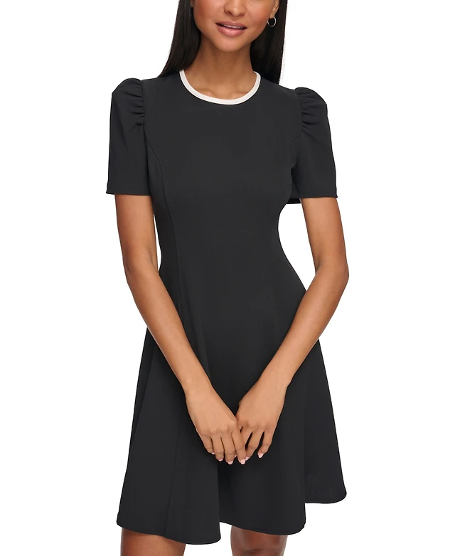 Karl Lagerfeld Paris Women's Scuba-Crepe Contrast-Trim A-Line Dress