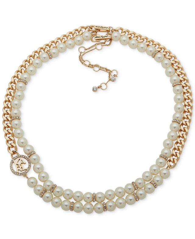 Karl Lagerfeld Paris Gold-Tone Crystal & Imitation Pearl Logo Drop Earrings