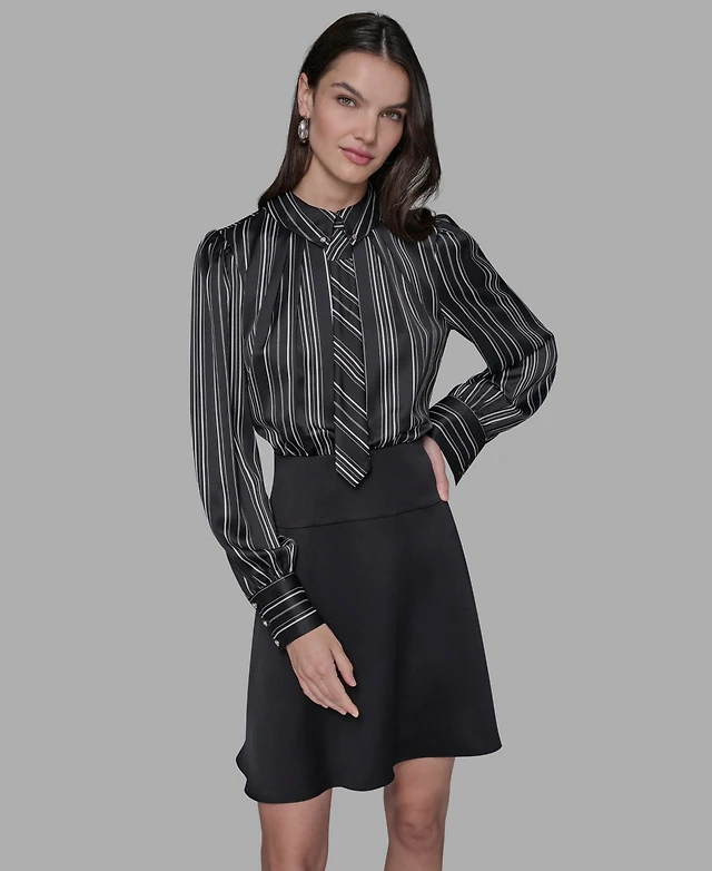 Karl Lagerfeld Paris Women's Button-Front Striped Shirt