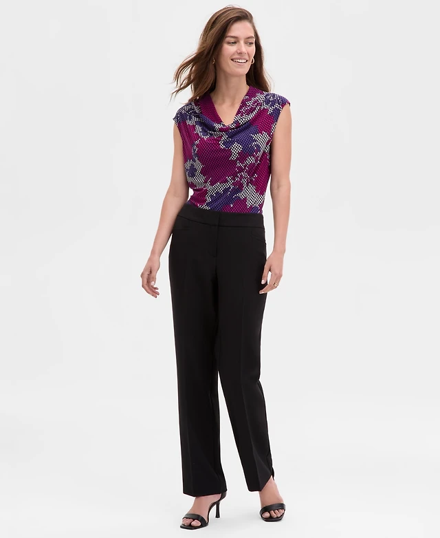 Kasper Women's Mid-Rise Faux-Fly Straight Pants, Regular & Petite