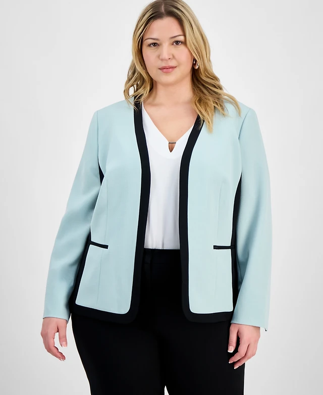 Kasper Women's Stretch Crepe Open-Front Roll-Sleeve Jacket, Regular & Petite