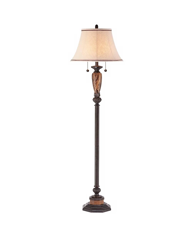 Sonnett Industrial Vintage like Floor Lamp Standing 63 1/2" Tall Bronze Metal Faux Marble Ivory Linen Bell Shade for Living Room Reading House Be