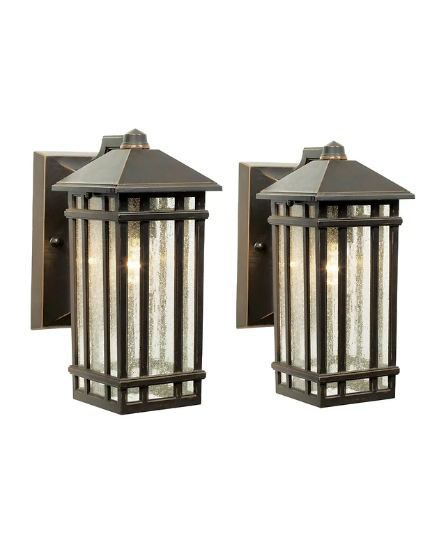Kathy Ireland Sierra Craftsman Mission Outdoor Wall Light Fixtures Set of 2 Rubbed Bronze 11" Seedy Glass for Post Exterior Barn Deck House Porch