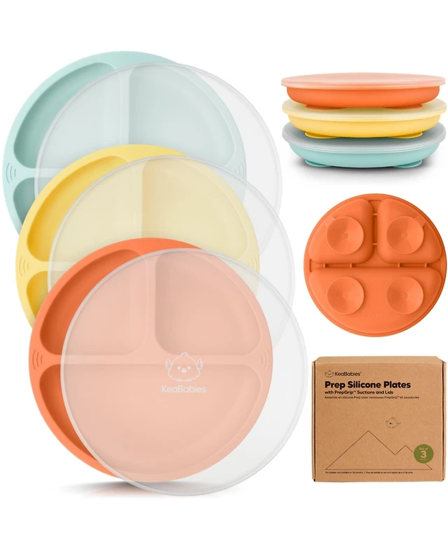 KeaBabies 3-Pack Prep Suction Plates with Lids, 100% Silicone Baby Lid, Bpa-Free Kids Divided Toddler