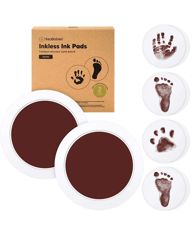 KeaBabies 2pk Round Inkless Ink Pad for Baby Hand and Footprint Kit, Clean Touch Dog Paw, Nose Print & Pet Safe