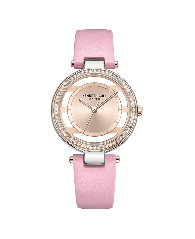 Kenneth Cole New York Women's Transparency Pink Genuine Leather Strap Watch 34mm