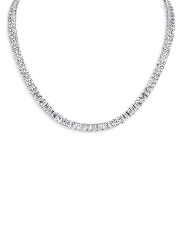 Emerald Cut Cubic Zirconia Tennis Necklace in Rhodium Plated, 16"