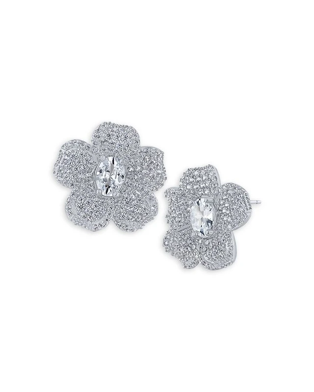 Pavé Flower Button Earrings