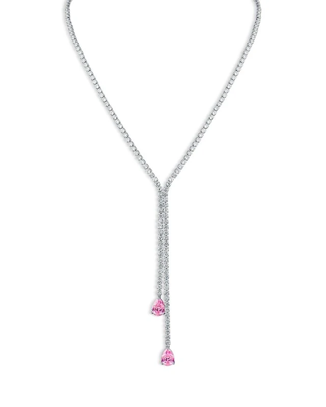 Round & Pear Shaped Cubic Zirconia Lariat Necklace, 16"-19"